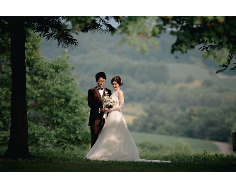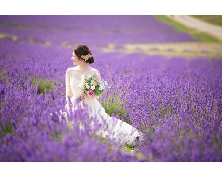 「ネットで見つけて、一生に一度は見てみたいと思っていた」というラベンダー畑で贅沢なウェディングフォト。