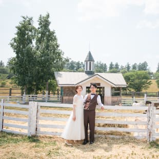 動物が大好きなおふたりの撮影は牧場からスタート!